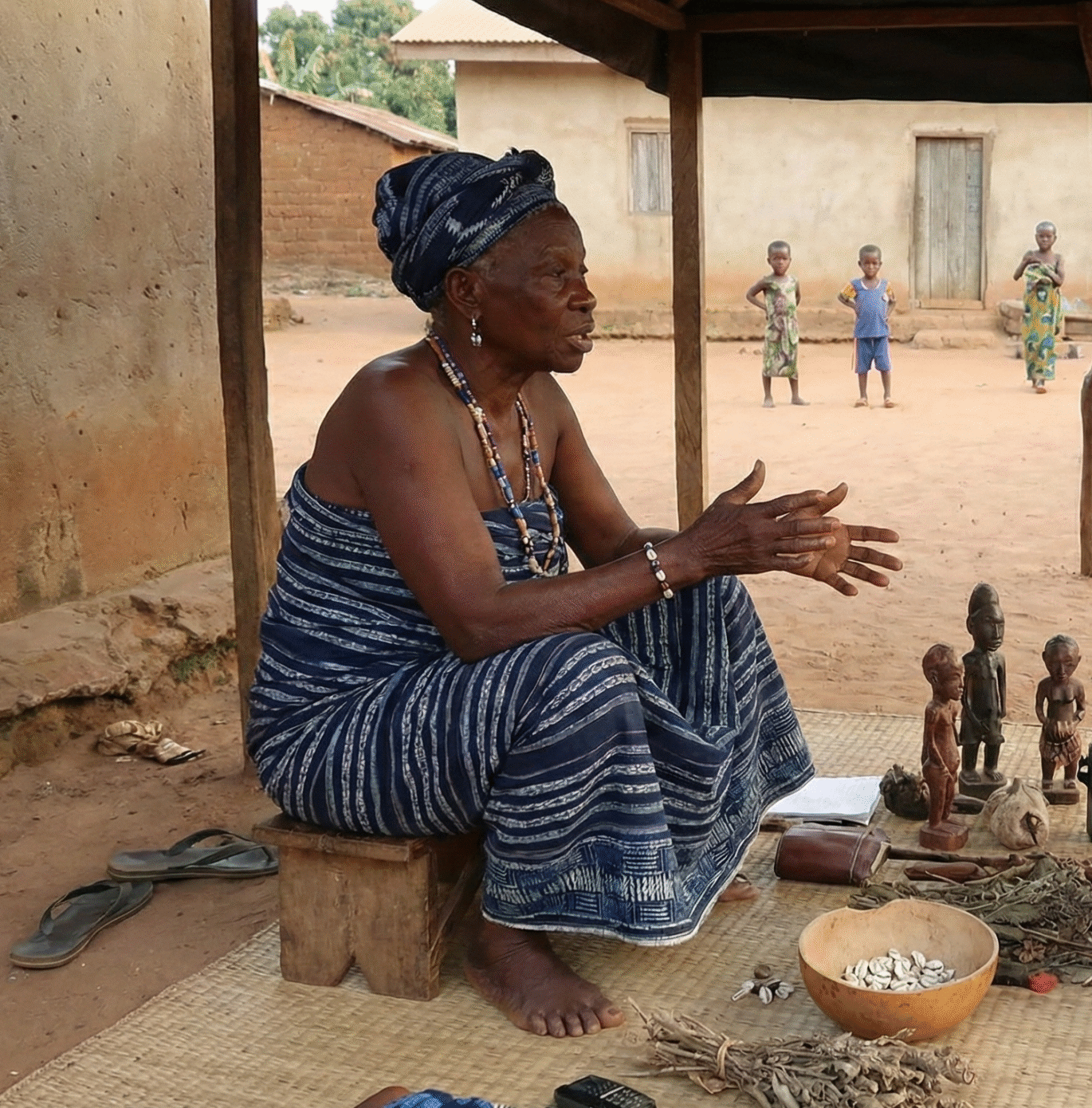 2. Fêtomè (Le monde des morts) : C’est le monde invisible, la demeure des ancêtres, des esprits et des vodoun. Ce n’est pas un enfer ou un paradis au sens chrétien, mais une dimension parallèle qui influence directement le monde des vivants.
